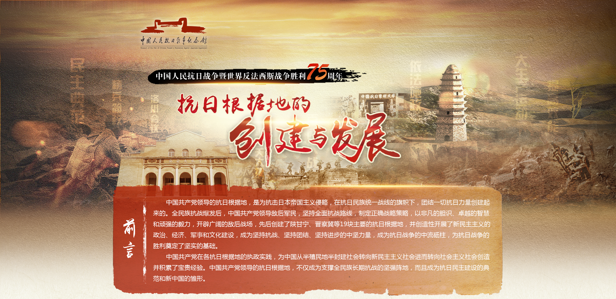 1937年7月7日,日本帝国主义蓄意制造卢沟桥事变,发动全面侵华战争。在中国共产党倡导建立的抗日民族统一战线旗帜下,全国人民义无反顾地投身到抗击日本侵略者的洪流之中。中国共产党领导的抗日武装,在敌后广泛发动和武装群众,开展独立自主的游击战争,建立抗日根据地,开展根据地建设,有力支持和支撑了敌后抗战,为中国革命保存和积聚了力量,鼓舞了全国人民的斗志,为抗日战争的胜利奠定了坚实基础。