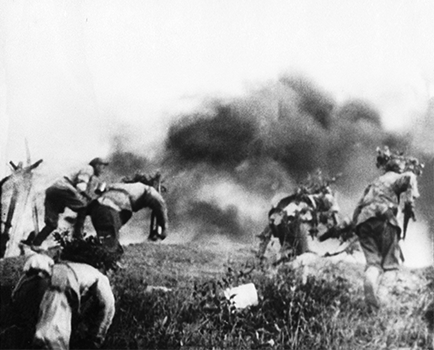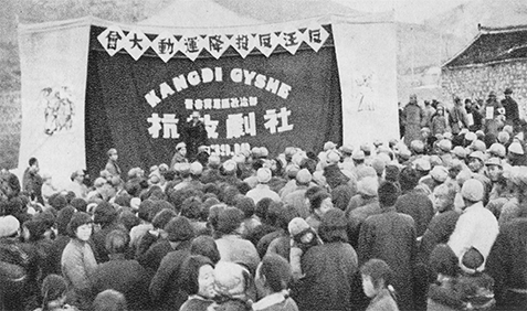 中国共产党领导抗日武装挺进敌后,开辟广大敌后战场,创建了19块主要的抗日根据地,并创造性开展了新民主主义的政治、经济、军事和文化建设,把敌人的后方变成抗日的前线。在与日本侵略者的艰苦斗争中,中国共产党坚持兵民是胜利之本,领导敌后军民独立自主地开展群众性的游击战争,实行人民战争的战略战术,形成游击战、根据地、人民武装“三位一体”的战略格局。中国共产党开辟的广阔敌后战场逐渐上升为抗战的主战场,党领导的人民武装在战争中不断发展壮大,成为抗战的中坚力量。中国共产党人勇敢战斗在抗日战争最前线,支撑起中华民族救亡图存的希望。